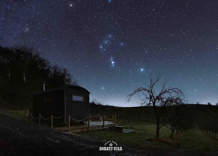 Sumérgete en la experiencia única de Orchard Retreat Off Grid Shepherds Huts en Dorset, un refugio encantador que te invita a desconectar de la rutina diaria. Este hermoso destino se encuentra a tan solo 27 km de Golden Cap y a 31 km del puerto de Weymouth, ofreciendo un entorno idóneo para los amantes de la naturaleza.